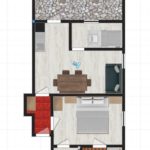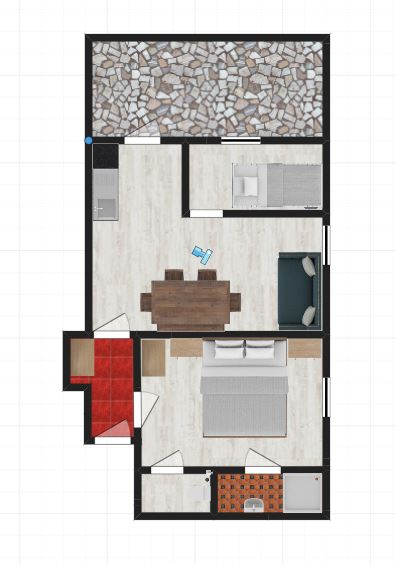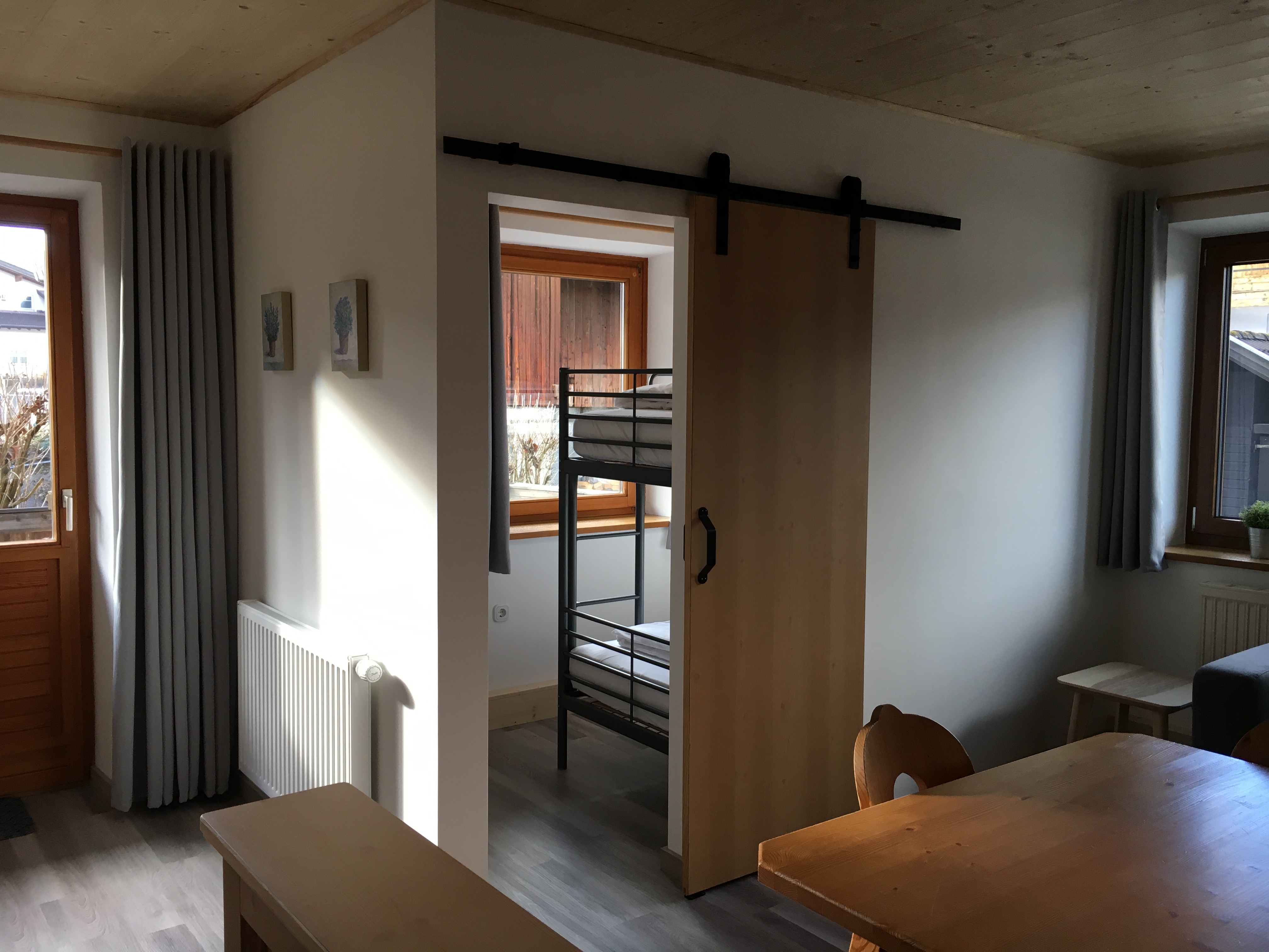 Leefruimte met keuken (incl vaatwasser), zithoek en sofa. Slaapkamer met stapelbed en slaapkamer met dubbel bed. Badkamer met douche, lavabo en haardroger. Afzonderlijk toilet.